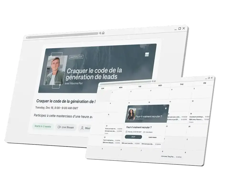 • Une plateforme accessible 24h/24 : lives, replays, formations, discussions, IA.