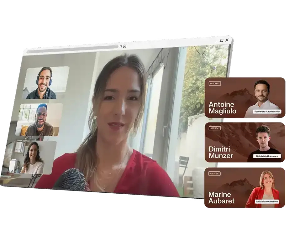 Vous vous inscrivez à un hot seat pour exposer une problématique devant plusieurs entrepreneurs, dont un expert SKL CLUB™ et nous allons tenter de la résoudre tous ensemble.