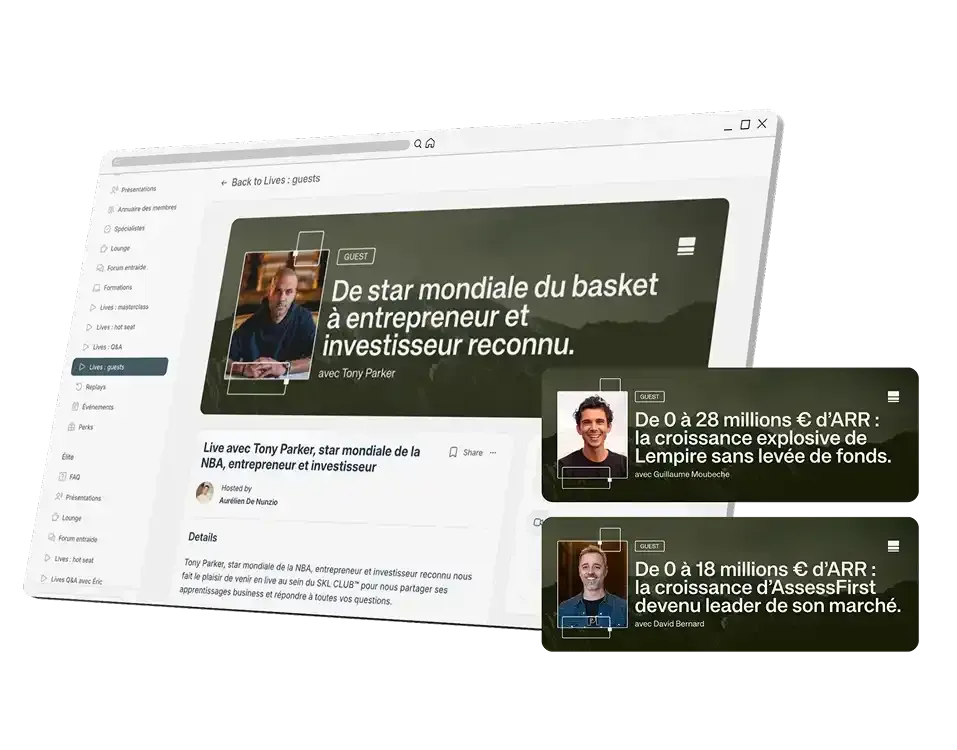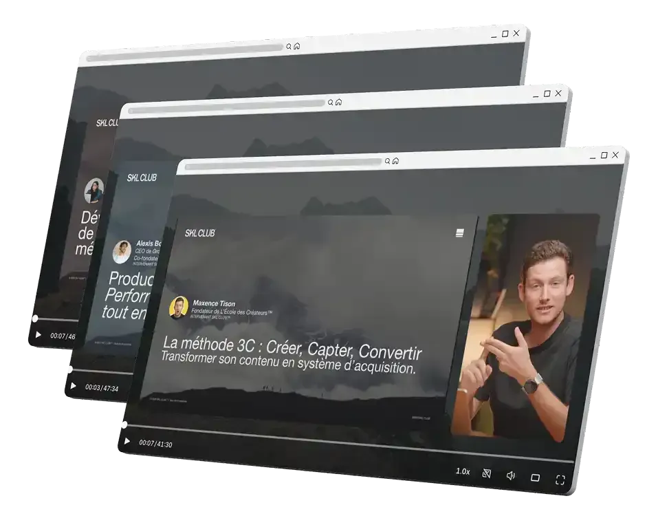 Vous allez découvrir ci-dessous toute la valeur que nous avons apportée dans SKL CLUB™ : les live, les replays, les masterclass, le réseau…