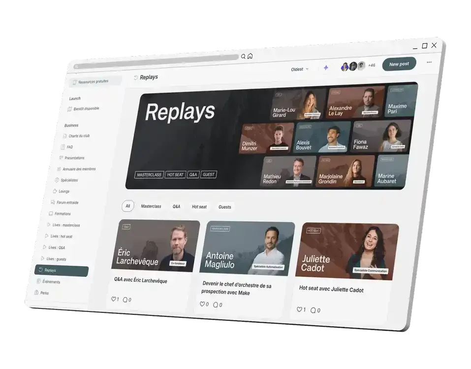 Tous les lives seront enregistrés et triés par sujet sur notre plateforme. Vous pourrez également faire une recherche par mot-clé pour trouver tous les replays qui traitent du sujet qui vous intéresse.