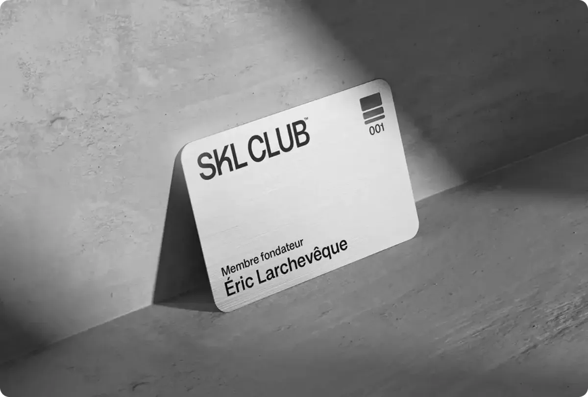 Vous recevrez (par la poste !) une carte en métal numérotée, prouvant que vous faites partie des membres fondateurs du SKL CLUB™.